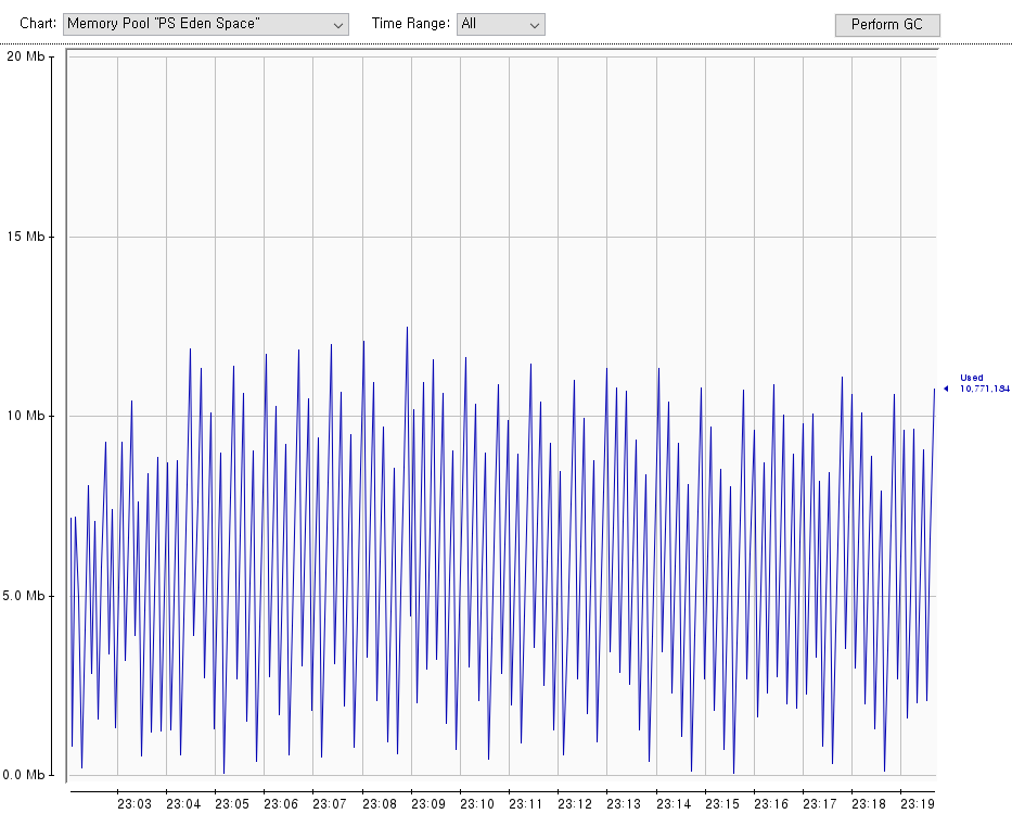 ---> Young 전제 2GB 에서 SurvivorRatio가 8이면 Eden영역이 1.6GB