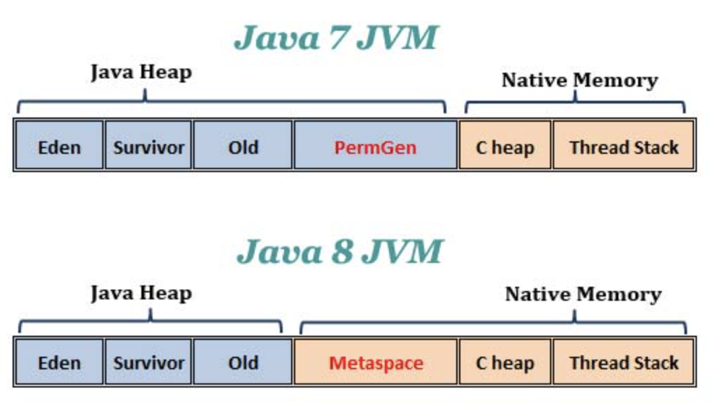 Java 8 이전에는 Metaspace 영역이 아닌 Permanent 영역이 존재하였다. Permanent 영역은 Class의 Meta 정보나 Method의 Meta 정보, Static 변수와 상수 정보들이 저장되는 공간으로 활용되었다. 하지만 Java 8 버전부터는 기존의 Permanent 영역이 Native 영역으로 이동하여 Metaspace 영역으로 변경되었다.