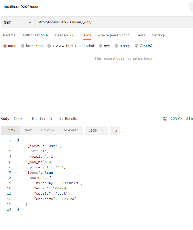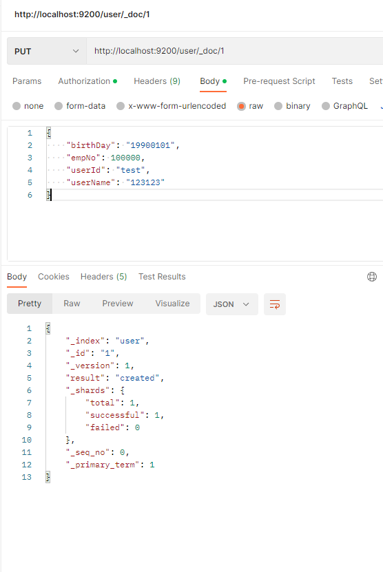 그래서 저는 _doc (document) 를 아래와 같이 POSTMAN을 사용하여 입력하였습니다.