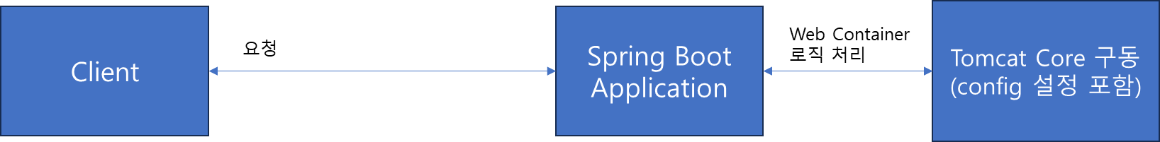 위 그림과 같이 Spring Boot Application 실행 시 Tomcat Core 를 참조하여 Web Container 를 구동할 수 있도록 구성되어있다.
